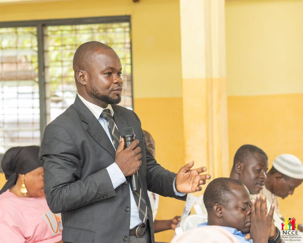 Henry Attoh Okai, Ag. Regional Executive Secretary, screened the “Dinner for Two” video to highlight the destructive consequences of conflict, including loss of life and economic disruption. He emphasized dialogue and mediation as the most effective tools for achieving peaceful coexistence and unity.