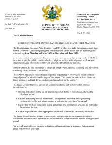 the Ga Traditional Council regarding the commencement of the annual ban on drumming and