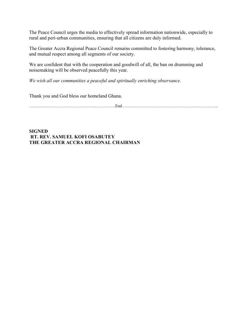 The Greater Accra Regional Peace Council (GARPC) wishes to re-echo the announcement from